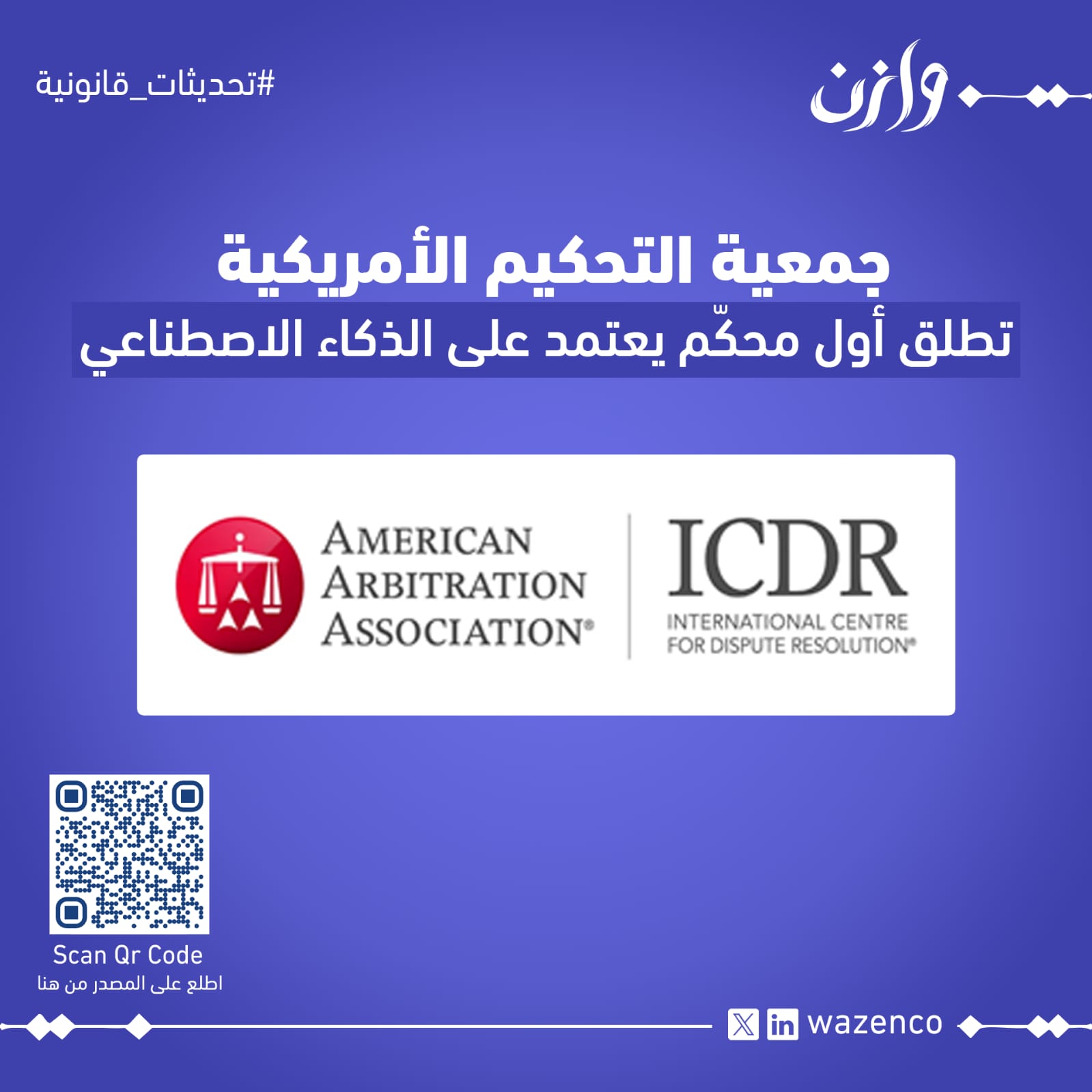 أعلنت جمعية التحكيم الأمريكية (AAA) عن إطلاق أول محكّم صناعى مدعوم بالذكاء الاصطناعي في نوفمبر 2025، على أن يبدأ استخدامه في قضايا التحكيم المستنده إلى وثائق بقطاع الإنشاءات، وهو من أكثر القطاعات التي تشهد نزاعات متكررة وتتطلب حلولاً سريعة وفعالة.