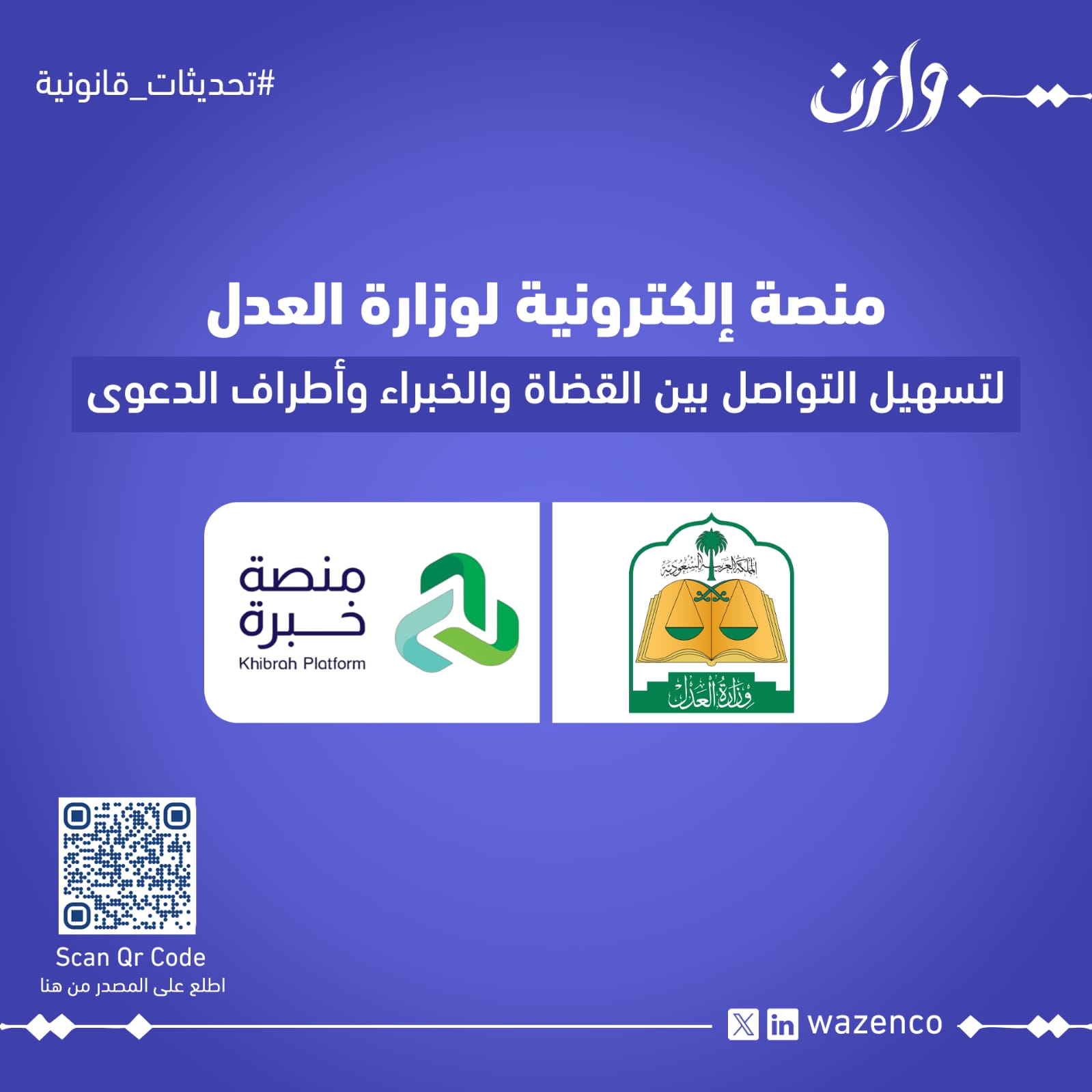 منصة خبرة، أطلقتها وزارة العدل السعودية وهي منصة وطنية إلكترونية تهدف إلى ربط المحاكم والدوائر التجارية بالخبراء المتخصصين في مختلف المجالات، بما يسهم في تقليص أمد التقاضي وتسهيل إجراءات التواصل بين القاضي وأطراف الدعوى والخبير، وصولًا إلى تحقيق العدالة الناجزة ورفع جودة تقارير الخبرة. تعمل المنصة على أتمتة عملية ترشيح الخبراء عبر نظام إلكتروني ذكي يختار خمسة خبراء مؤهلين لكل قضية وفق المعايير المحددة في طلب الخبرة، ما يلغي الحاجة لعقد جلسات مطولة لاختيار الخبير ويتيح بدء عمله فورًا عبر النظام من خلال الاطلاع على ملف القضية وإعداد التقرير إلكترونيًا.