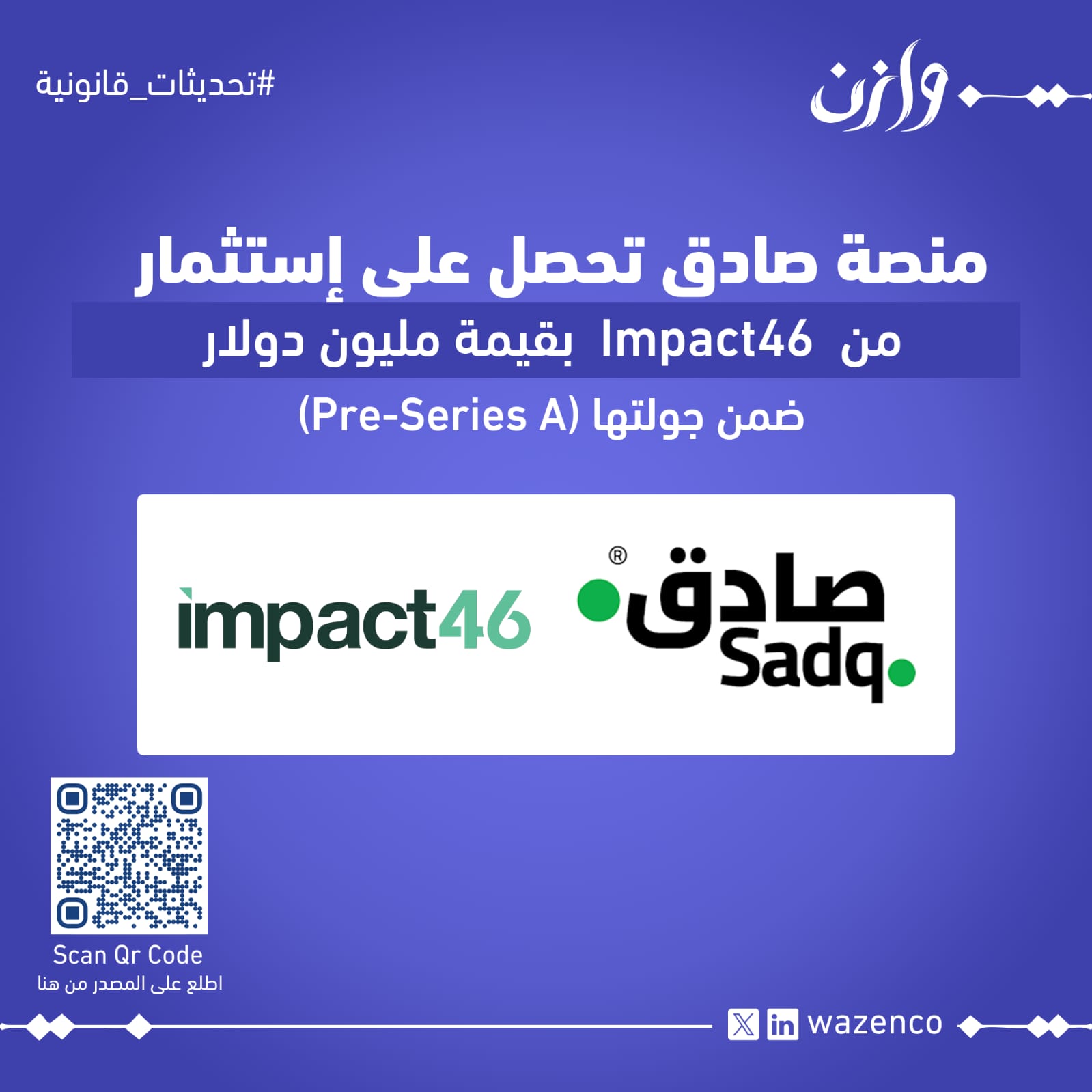 منصة صادق السعودية تحصل على استثمار إضافي بقيمة مليون دولار ضمن جولتها (Pre-Series A) من Impact46، في خطوة تعكس ثقة المستثمرين بقدرة المنصة على ترسيخ موقعها في سوق التوقيعات الرقمية وحلول توثيق سير العمل.