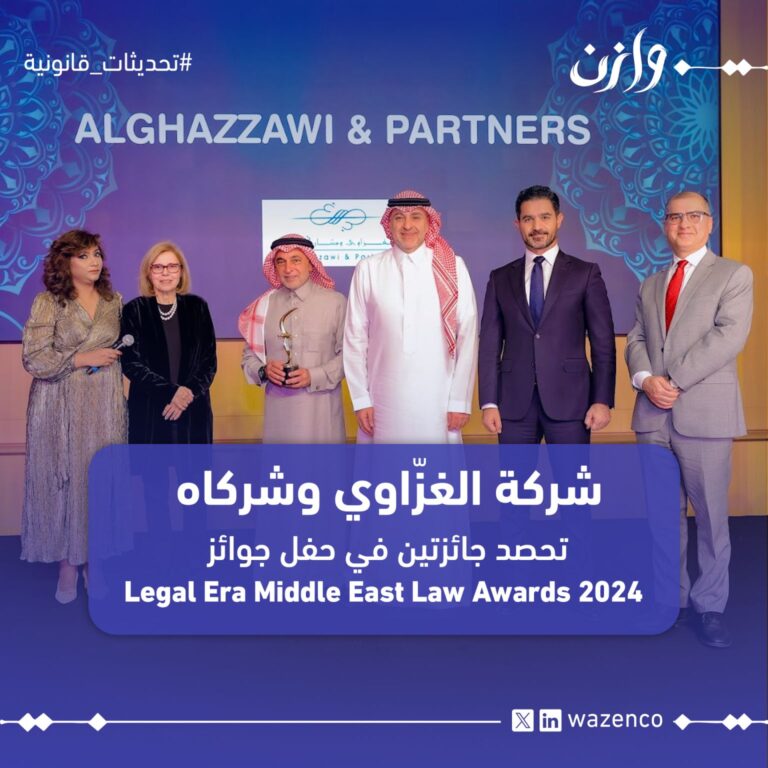 حققت شركة الغزّاوي وشركاه AlGhazzawi & Partners تميزًا جديدًا بفوزها بجائزتين مرموقتين خلال حفل النسخة الخامسة من جوائز Legal Era Middle East Law Awards 2024 السابقWazenco29 ديسمبر 2024حققت شركة الغزّاوي وشركاه AlGhazzawi & Partners تميزًا جديدًا بفوزها بجائزتين مرموقتين خلال حفل النسخة الخامسة من جوائ ... اقرأ المزيد