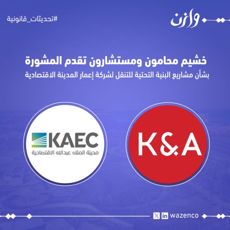 خشيم محامون ومستشارون (K&A) تقدم المشورة بشأن مشاريع البنية التحتية للتنقل لشركة إعمار المدينة الاقتصاديةWazenco9 يناير 2025قدمت شركة خشيم محامون ومستشارون (K&A) الاستشارات القانونية لشركة إعمار المدينة الاقتصادية - المطور الرئيسي لمد ... اقرأ المزيد