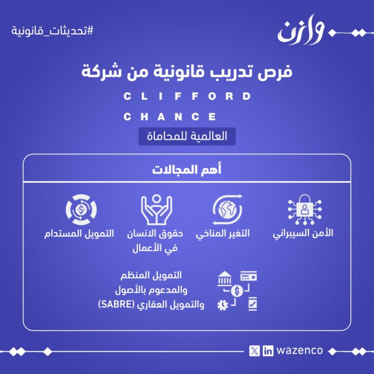 مبادرة تدريبية عالمية من شركة Clifford Chance للمحاماةWazenco8 يناير 2025تقدم شركة Clifford Chance للمحاماة مبادرة تدريبية عالمية مبتكرة تستهدف طلاب وخريجي القانون من مختلف أنحاء العالم. ته ... اقرأ المزيد