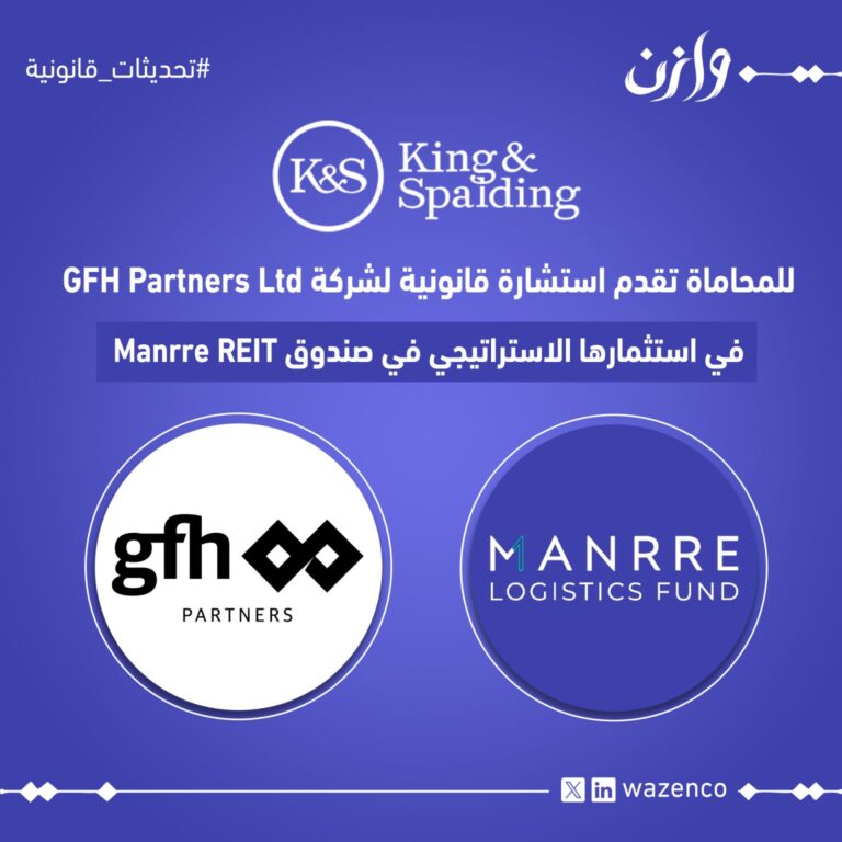 شركة King & Spalding تقدم خدمات استشارات قانونية لشركة جي إف إتش بارتنرز المحدودة GFH Partners Ltd. في استثمارها الاستراتيجي في صندوق مانري للاستثمار العقاري Manrre Logistics FundWazenco5 فبراير 2025دمت شركة King & Spalding خدمات الاستشارات القانونية لشركة جي إف إتش بارتنرز المحدودة GFH Partners Ltd. في استثمارها الاسترا ... اقرأ المزيد