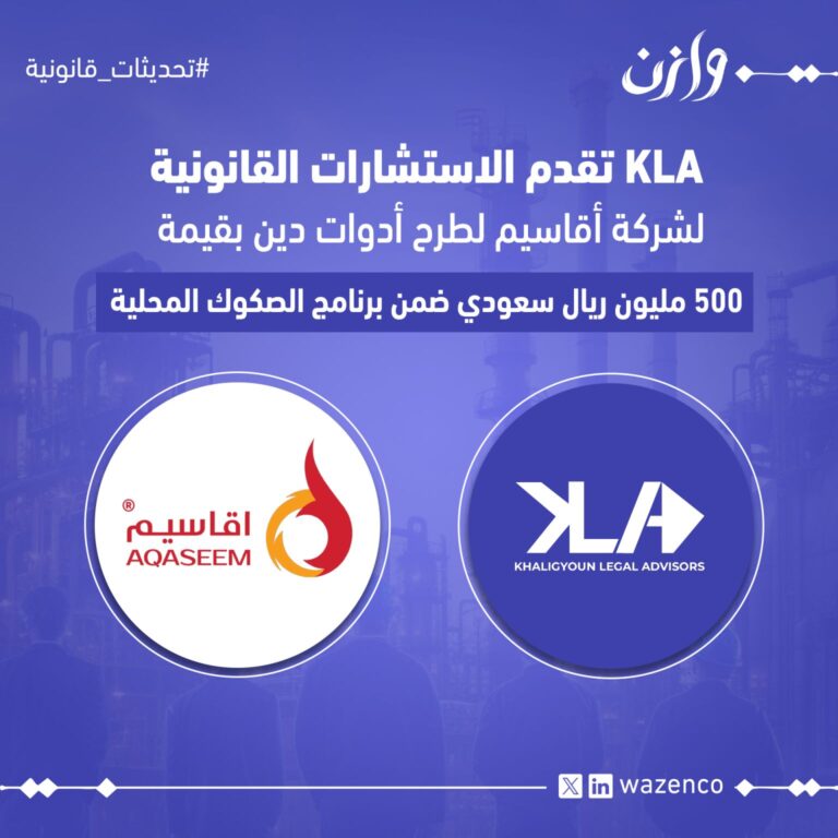 شركة KLA تقدم الاستشارات القانونية لشركة أقاسيم في طرح أدوات دين بقيمة 500 مليون ريال سعوديWazenco4 فبراير 2025قدمت شركة KLA الاستشارات القانونية KLA Firm لشركة أقاسيم Aqaseem Factory Co. For Chemical and Plastic Industry في طرح أدوات دين بقيمة 500 ملي ... اقرأ المزيد