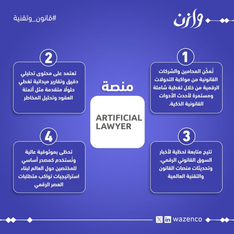 منصة Artificial LawyerWazenco17 يونيو 2025تُعد منصة Artificial Lawyer من أبرز المنصات الرقمية المتخصصة في الابتكار القانوني والتكنولوجيا القانونية، حيث تركز ... اقرأ المزيد
