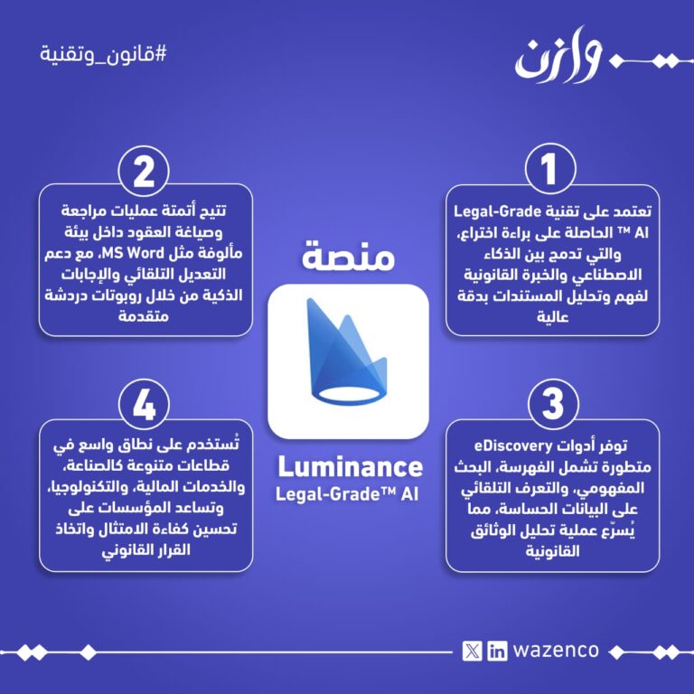 منصة Luminance Wazenco1 يوليو 2025تُعد منصة Luminance واحدة من أبرز المنصات العالمية المتخصصة في توظيف الذكاء الاصطناعي لخدمة القطاع القانوني، حيث ... اقرأ المزيد