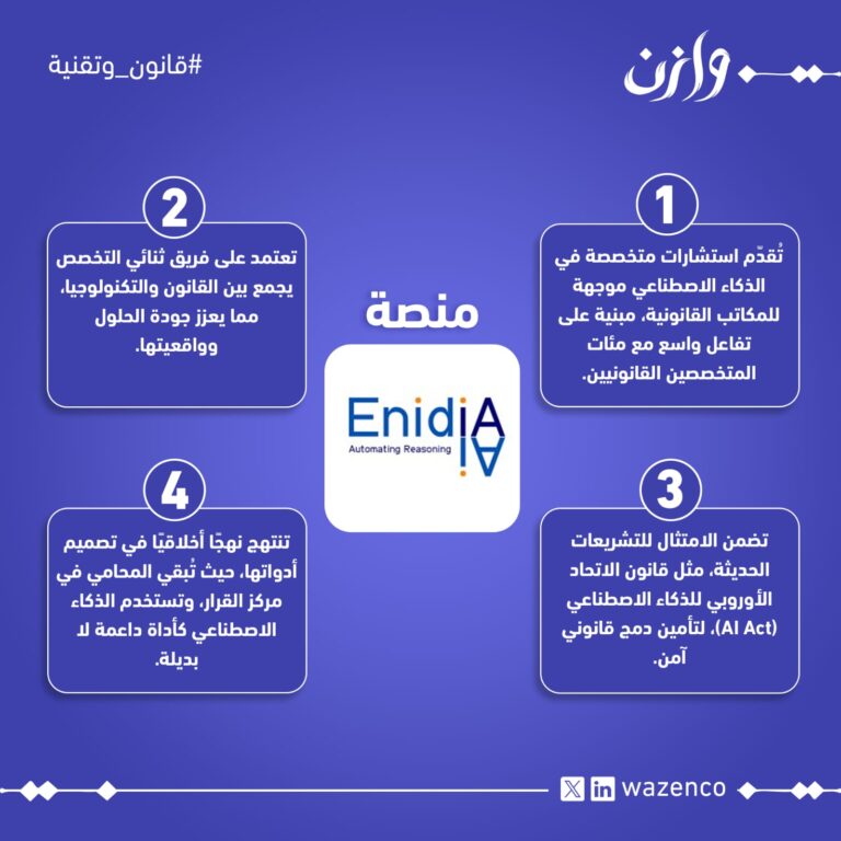 منصة Enidia AIWazenco29 يوليو 2025تُعد منصة Enidia AI من المبادرات الرائدة في مجال دمج الذكاء الاصطناعي بالقطاع القانوني، حيث تأسست عام 2021 على يد ال ... اقرأ المزيد
