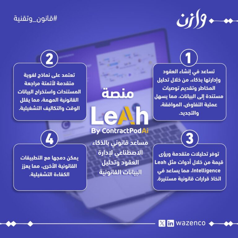 منصة LeahWazenco22 أبريل 2025تُعد منصة Leah من الحلول القانونية الذكية التي تعتمد على الذكاء الاصطناعي التوليدي، حيث تم تصميمها خصيصًا لتلب ... اقرأ المزيد
