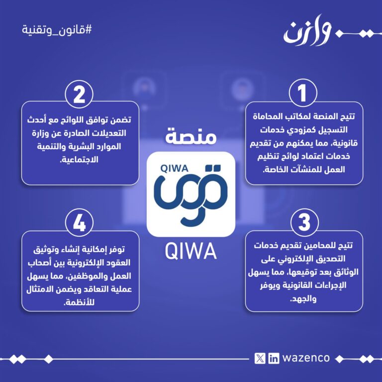 منصة QydWazenco29 مايو 2025منصة قيد، هي منصة إلكترونية سعودية تهدف إلى تمكين مكاتب المحاماة والمستشارين القانونيين من إدارة أعمالهم بك ... اقرأ المزيد