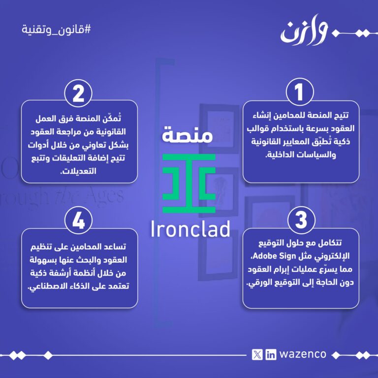 منصة IroncladWazenco6 مايو 2025تُعد Ironclad منصة متخصصة في إدارة العقود باستخدام التكنولوجيا الحديثة، حيث توفر حلولًا متكاملة لأتمتة عمليات إ ... اقرأ المزيد