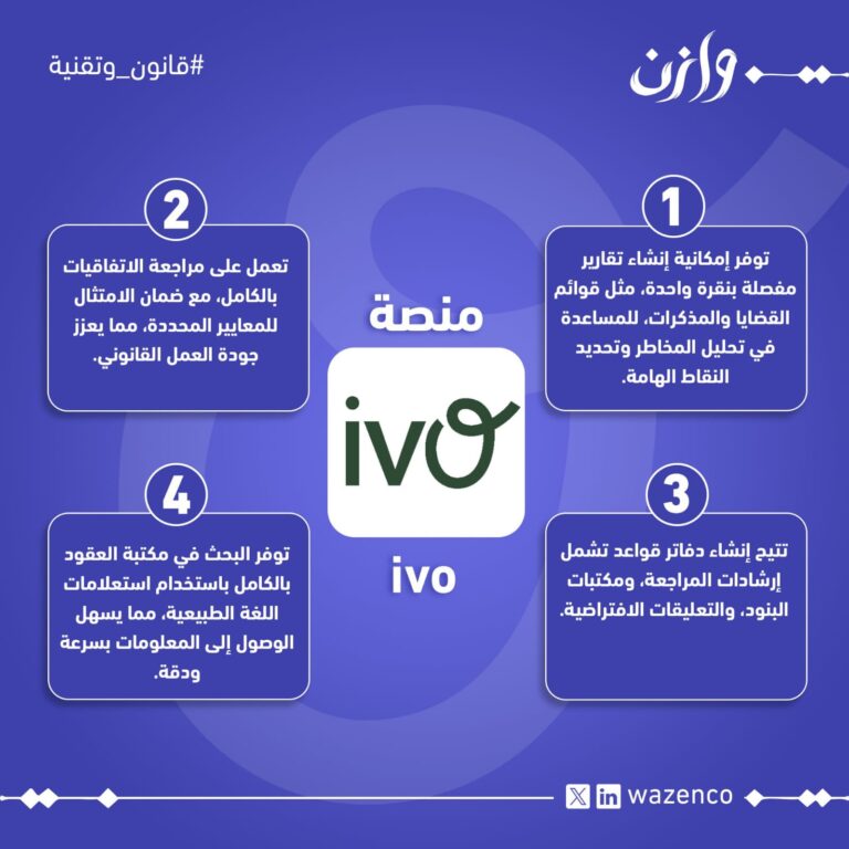 منصة ivoWazenco27 مايو 2025منصة ivo هي منصة متقدمة لمراجعة العقود مدعومة بالذكاء الاصطناعي، صُممت خصيصًا لمساعدة الفرق القانونية على تسر ... اقرأ المزيد