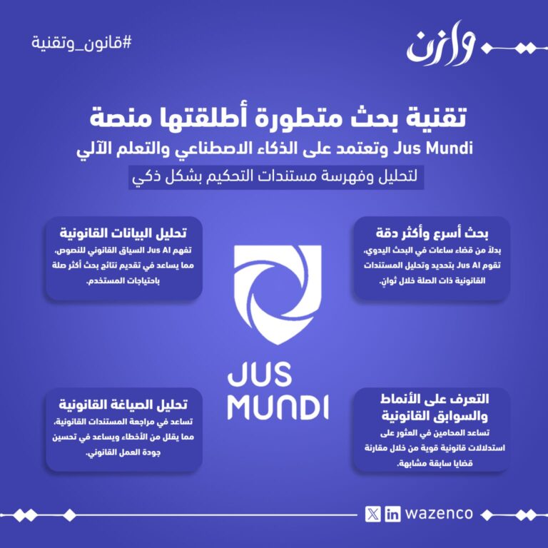 منصة Jus MundiWazenco23 مارس 2025يشهد قطاع التحكيم في السعودية والشرق الأوسط تحولًا رقميًا متسارعًا، مدفوعًا بالتطورات التقنية التي تتيحها م ... اقرأ المزيد