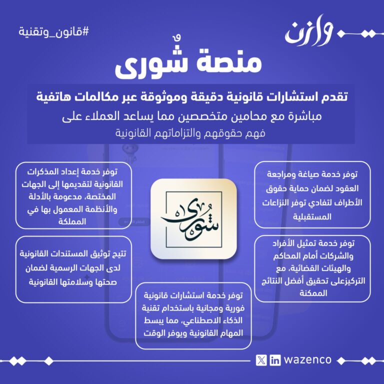 منصة شورى ShwraWazenco23 مارس 2025في عالم يتسارع فيه التطور الرقمي، لم يعد الوصول إلى الخدمات القانونية أمرًا معقدًا أو مكلفًا. منصة Shwra | شورى ل ... اقرأ المزيد