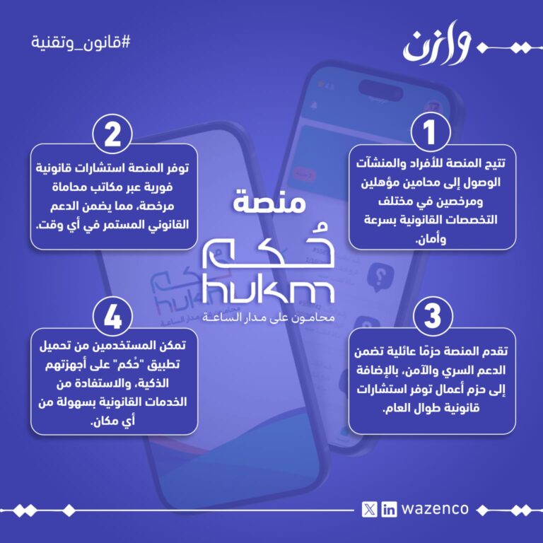 منصة حُكم HukmWazenco15 أبريل 2025منصة حُكم القانونية هي منصة سعودية رقمية تهدف إلى ربط المحامين مع الأفراد والمنشآت، مقدمةً مجموعة متنوعة من ا ... اقرأ المزيد