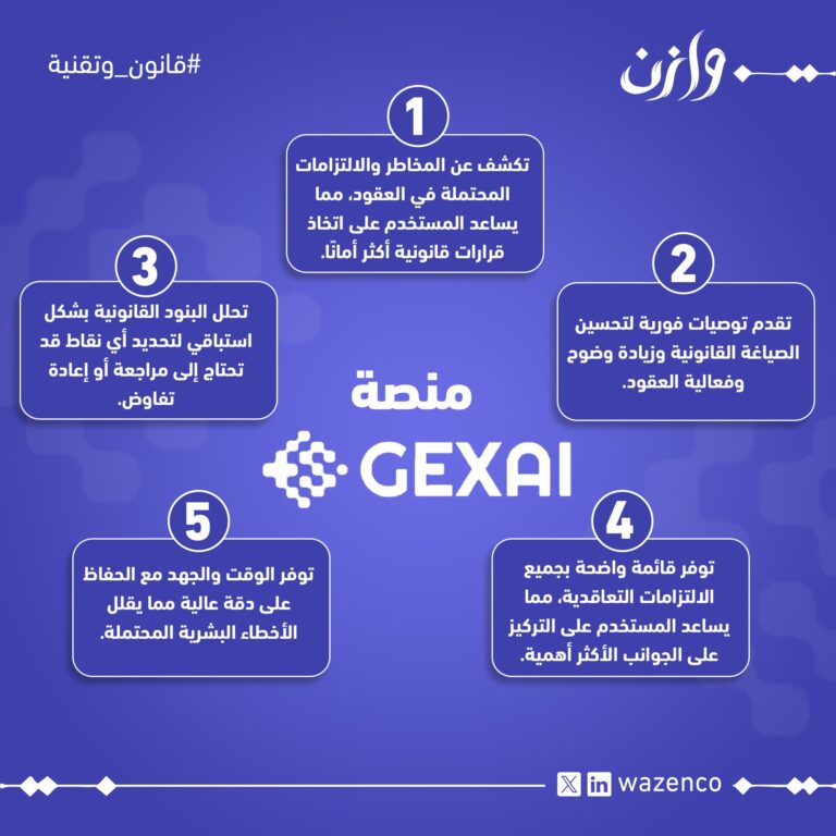منصة GexAIWazenco8 أبريل 2025منصة GexAI هي منصة قانونية ذكية تعتمد على الذكاء الاصطناعي لتحليل العقود وتحريرها بكفاءة، مما يساعد المحامين وا ... اقرأ المزيد