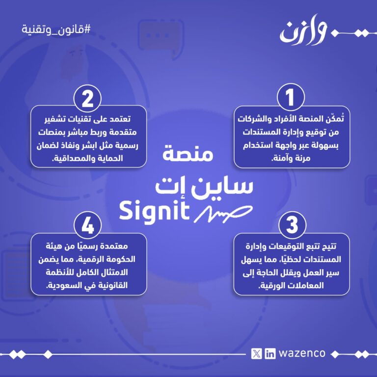 منصة SignitWazenco10 أبريل 2025ساين إت هي منصة سعودية توفر حلاً رقميًا مبتكرًا يُمكن الأفراد والشركات من توقيع المستندات إلكترونيًا بسهولة ... اقرأ المزيد